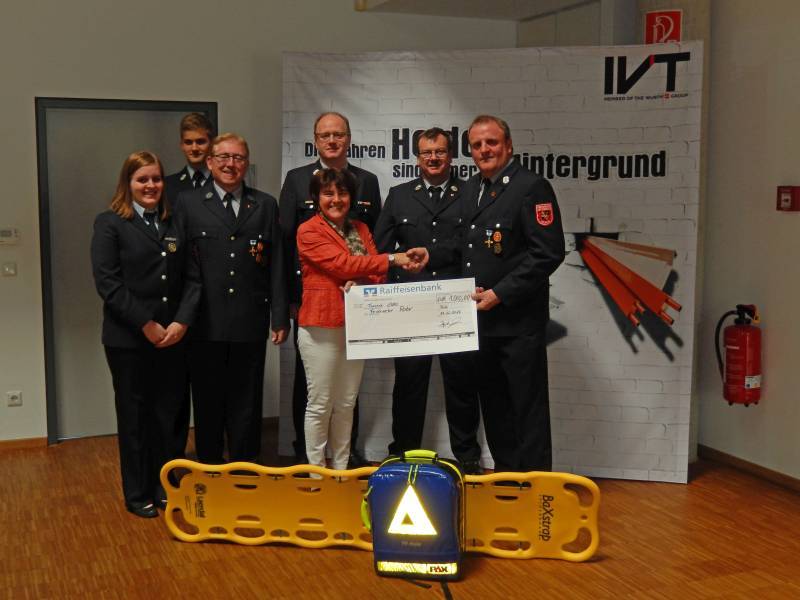 Kürzlich überreichte Ingrid Zürn von der Firma IVT-Installations- und Verbindungstechnik aus dem Rohrer Gewerbegebiet einen Scheck über 1.000 Euro und Josef Seitz vom Gasthaus Bierlein in Rohr weitere 250 Euro für die Ersthelfergruppe. Von den Spenden werden verschiedene Ausrüstungsgegenstände, wie Rettungsrucksack und Rettungsbrett, angeschafft. Feuerwehrvorstand Herbert Richter bedankte sich bei den beiden Spendern für die großzügige finanzielle Unterstützung.