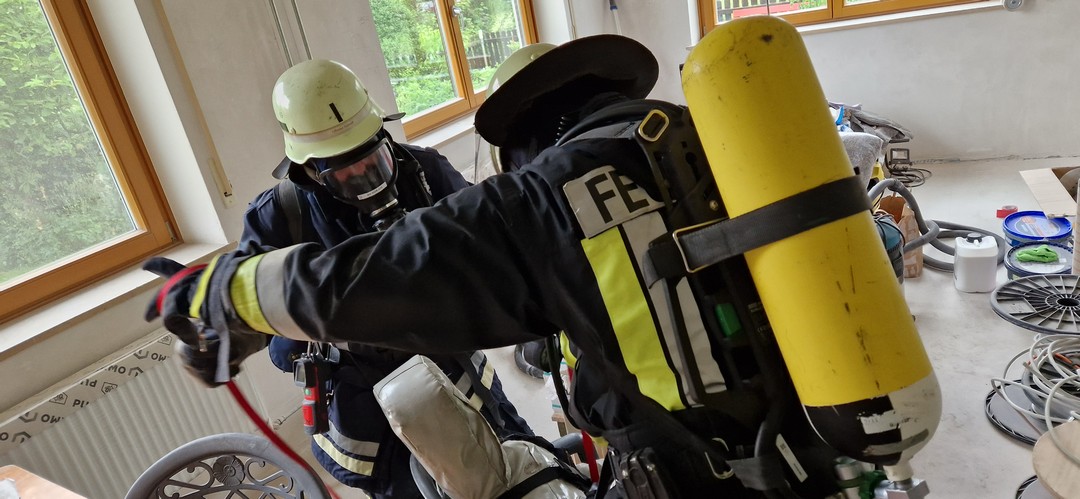 Im Anschluss wurde das korrekte Ablegen der Schutzkleidung mitsamt Gerät nach einem Brandeinsatz geprobt.