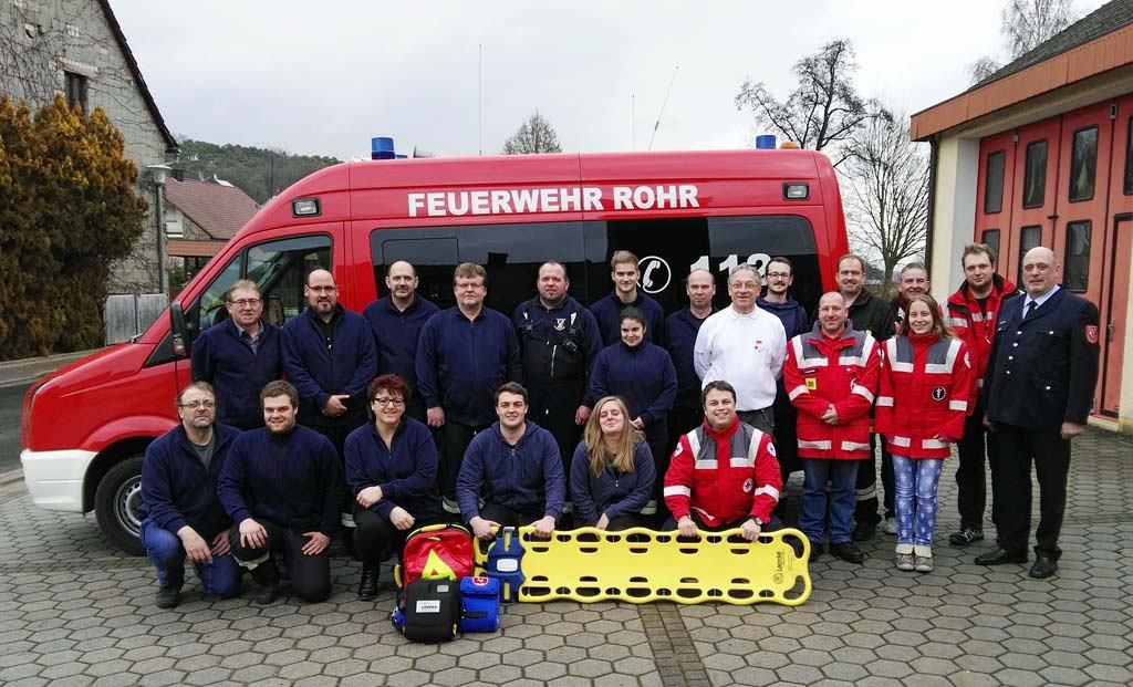 Neben den bereits voll ausgebildeten First-Respondern, Thomas Strempel, Martina Strempel und Gerhard Tischner, nahmen an der aktuellen Schulung die beiden Kommandanten Thomas Richter und Roland Betsch sowie folgende Mitglieder der Rohrer Feuerwehr teil: Marcus Popp, Jonas Popp, Stefan Großer, Uwe Großer, Anja Richter, Klaus Scheuerpflug, Matthias Schwarz, Melanie Köhner, Tobias Ponwitz, Siegfried Hindera und Reiner Lohmüller (FF Prünst).