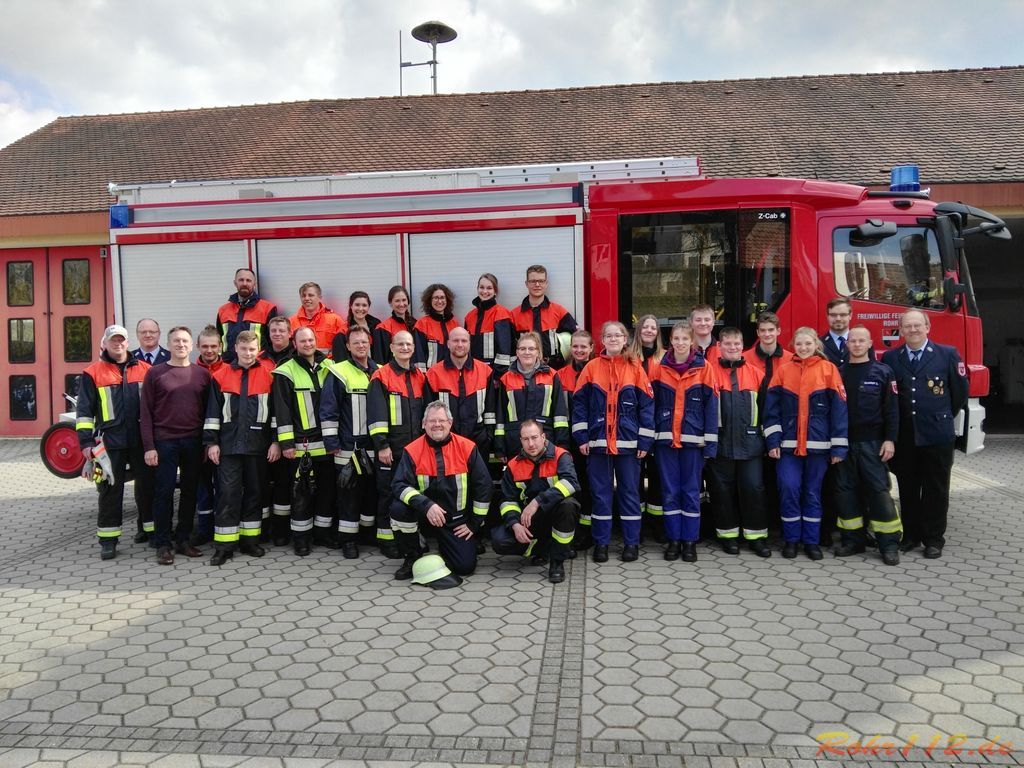 Den Abschluss des Lehrgangs machte die Prüfung am 06.04.2019 im Gerätehaus der Freiwilligen Feuerwehr Rohr. An diesem Termin mussten die Feuerwehrkameradinnen und Feuerwehrkameraden ihr erworbenes Wissen unter Beweis stellen und eine Prüfung in Theorie und Praxis ablegen. Im Anschluss konnte an alle Teilnehmer/innen eine Urkunde überreicht werden, welche den erfolgreich bestandenen Grundlehrgang "amtlich" machte. Die Prüfung selbst wurde vom Kreisbrandmeister Kratzer abgenommen, welcher im Landkreis Roth für die Ausbildung zuständig ist.